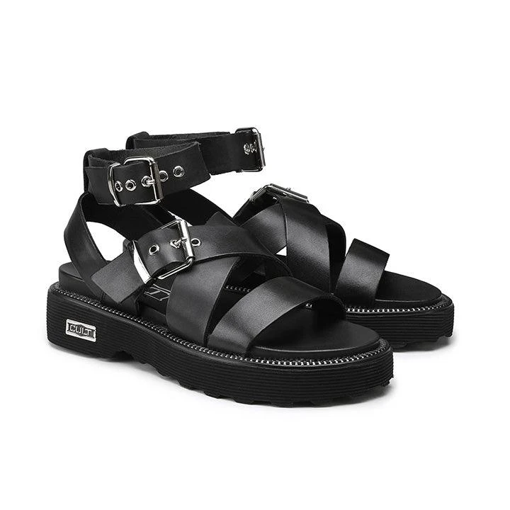 A must-have in your seasonal wardrobe, Cult’s chunky sandals will add character and style to your summer looks. Crafted from black leather, they feature straps with metal buckles and rest on a generous rubber sole. Choose them with both shorts and dresses.
