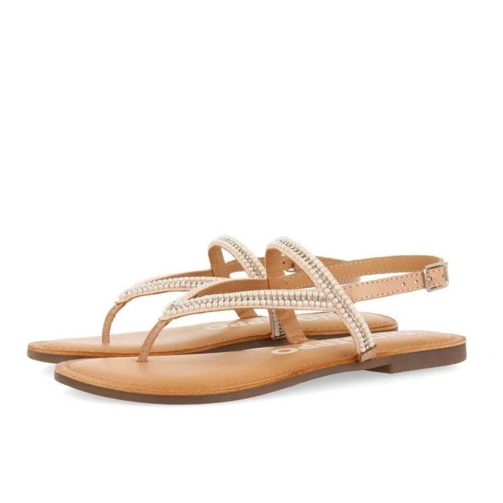 Still don’t have your Gioseppo sandals for this summer? Nude flat sandals with thin straps decorated with mini pearls and an adjustable buckle. Adjustable ankle closure. Latex padded leather insole for greater cushioning. Flexible floor. Leather insole tanned in tanneries that follow a more sustainable tanning protocol under the Leather Working Group standards.
